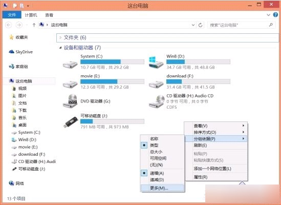 因为在win8.1系统升级后,有许多的操作和文件名是重新命名的,导致我们很难知道以往的习惯的操作设置在哪里!就如在电脑中插上U盘后与系统中的设备和驱动器分不清楚,那么要怎么办呢?现在我们一起来看看在win8.1系统的设备和驱动器与U盘中的分开显示操作吧!