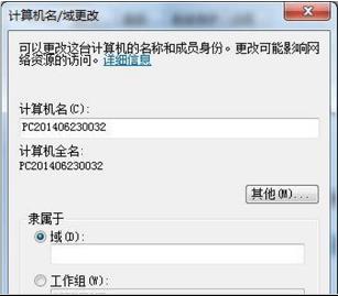 3、此时系统就会弹出一个Win732位旗舰版系统属性面板,在计算机名选项卡下,点击更改其域或工作组的“更改”按钮。
