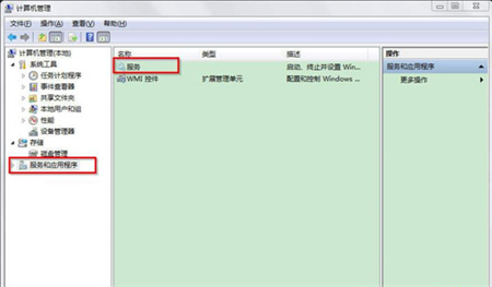 2、在“计算机管理”界面,点击“服务和应用程序”,在中间部分,我们就能看到“服务”选项,双击即可打开服务界面。