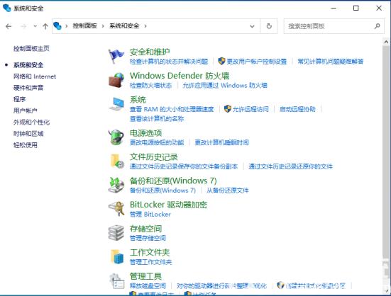 1、在列表中选择“系统和安全”,点击“文件历史记录”。