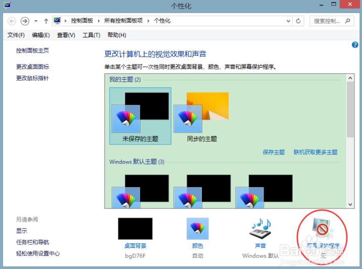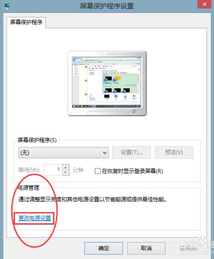 打开个性化窗口后,我们继续点击屏幕保护程序,然后点击更改电源设置。