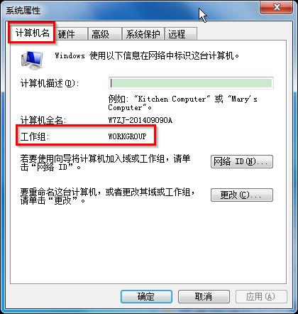 在计算机名标签栏中我们就能够看到工作组名称了。