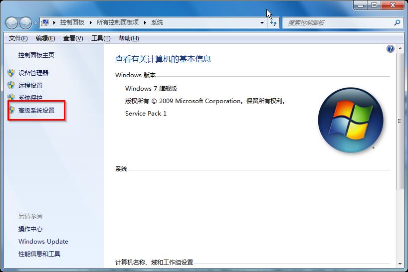 首先使用鼠标右键点击计算机图标,打开属性窗口,点击高级系统设置。