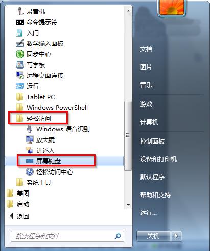 方法二:也可以打开开始菜单,找到轻松访问的文件夹来打开屏幕软键盘。