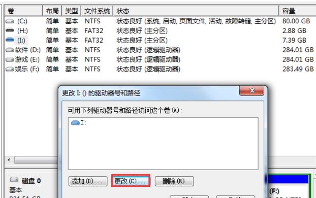 然后右键点击需要格式化的sd卡,选择更改驱动器号和路径,点击更改。