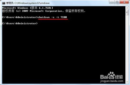 在命令提示符窗口中输入命令:shutdown -s -t 7200(7200的意思是7200秒)。