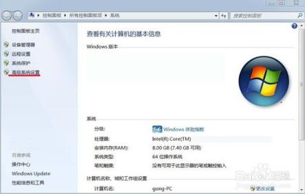 在属性窗口中继续点击左侧列表中的高级系统设置。