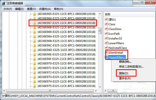 删除右侧栏目中的UpperFilters和LowerFilters即可。