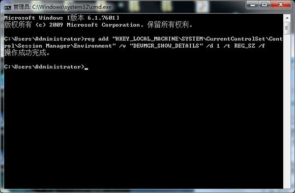 reg add “HKEY_LOCAL_MACHINE\SYSTEM\CurrentControlSet\Control\Session Manager\Environment” /v “DEVMGR_SHOW_DETAILS” /d 1 /t REG_SZ /f