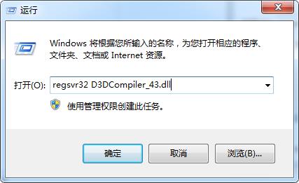 3.然后打开运行窗口,执行命令regsvr32 D3DCompiler_43.dll即可。