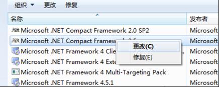 2.在“卸载”中找到需要卸载的net work环境包,右键点击“更改”。