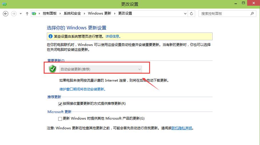 第四步:更改设置可以设置关闭自动更新,但是需要联网才能给关闭自动更新,关闭的方法是点击下拉菜单选择其中的“关闭自动更新”,如下图所示。