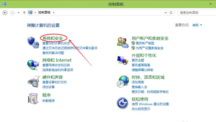 第二步:在控制面板界面点击“系统和安全”,如下图所示。
