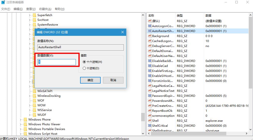 将名为“AutoRestartShell”的数值数据修改为“1”即可。