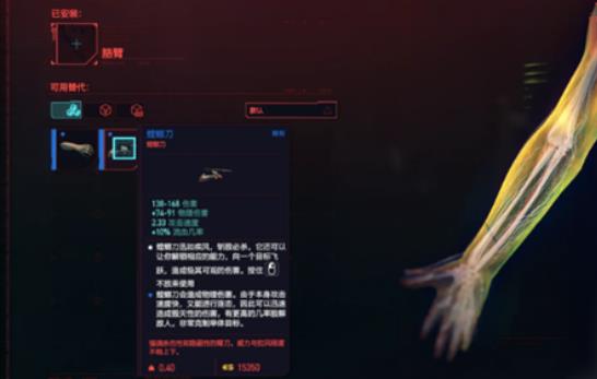 需要注意的是,螳螂刀并不算在武器分类,而是安装在手臂的义体。因此在武器店你是无法购买的,需要去义体医生那里进行购买与装备。