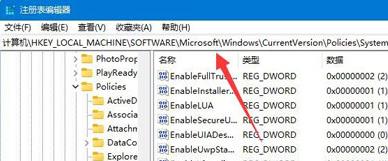 3、先后进行到下列途径:计算机\HKEY_LOCAL_MACHINE\SOFTWARE\Microsoft\Windows\CurrentVersion\Policies\System