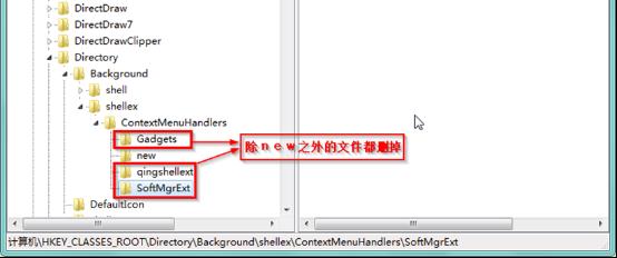 在ContextMenuHandlers项中把除了new的文件之外全部删除。