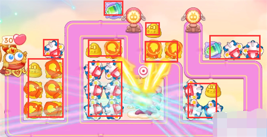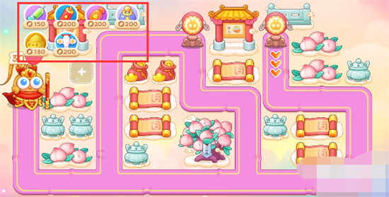 1、本关能够使用的炮塔是:毒针、鞭炮、火瓶、闪电炮、飞机、便便,今天来使用飞机加火瓶玩。
