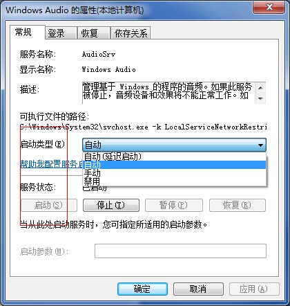 三:在“常规”选项卡下将启动类型改为“自动”,并在服务状态单击“启动”按钮 ,如图: