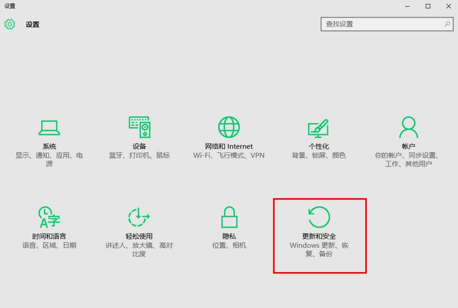 第一步:首先打开系统设置,随后进入"更新和安全",如下图。