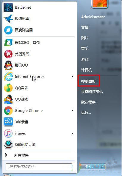 首先点击左下角开始菜单,通过开始菜单打开控制面板。