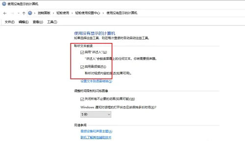 win10用户在使用电脑的时候发现桌面图标有蓝色边框,感觉不是很美观,那么怎么去掉呢?你先打开控制面板,点击轻松使用进入,然后在打开面板中点击轻松使用功能设置中心,然后找到“使用没有显示的计算机”进入,在打开窗口中将“启用讲述人”和“启用音频描述”这两项都取消勾选,并保存设置就可以了。