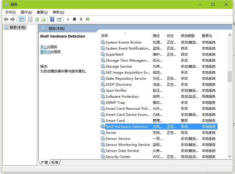 找到名为Shell Hardware Detection的服务,设置启动类型为禁用,点击停止按钮,确定即可。