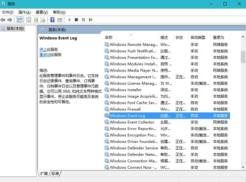 找到Windows Event log服务,双击设置启动类型为自动,再点击启动按钮即可。