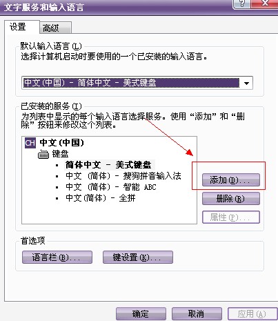 单击输入语言的下拉列表框,如要添加美式键盘,那请选择“英文(美国)”项目