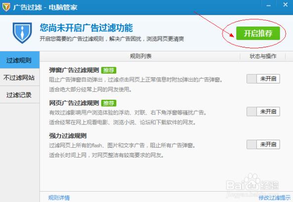 我们还可以对过滤规则以及不过滤的网站进行设置,很简单的。