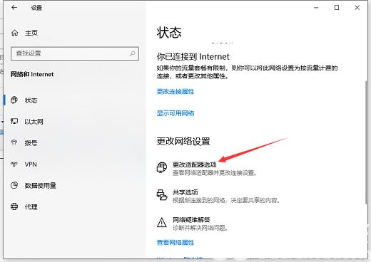 win10用户遇到了无法连接网络上网的情况,经过系统自带工具诊断,原因是wlan无有效ip配置,这种情况要怎么办呢?你先打开网络和Internet设置面板,然后找到更改适配器项进入,之后选中打算使用的网络,打开它的属性窗口,检查一下internet协议版本4是否勾选,没有的话勾选一下就能解决问题了。