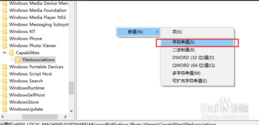 在注册表编辑器中依次点击HKEY_LOCAL_MACHINE\SOFTWARE\Microsoft\Windows Photo Viewer\Capabilities\FileAssociation。