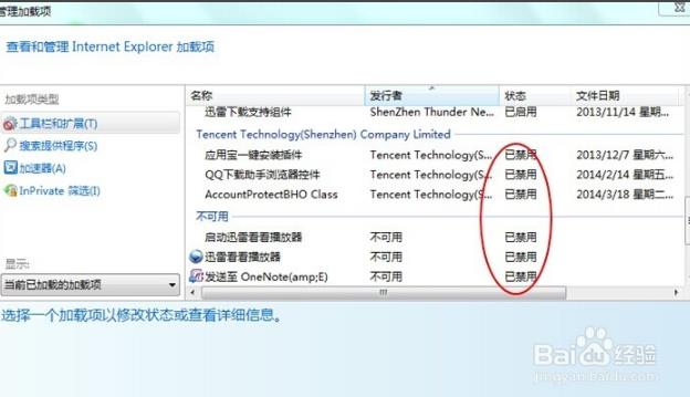 在管理加载项中把可疑的加载项禁用掉就可以解决打开网页提示当前页面脚本发生错误的问题了。