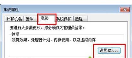 2、在弹出来的系统属性窗口中的“高级”选项卡中点击“性能”栏目下的设置按钮。