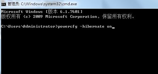 在命令提示符输入powercfg -hibernate on,接着就可以找回雨林木风win7休眠按钮了。