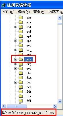 二、依次点击HKEY_CLASSES_ROOT\.exe。