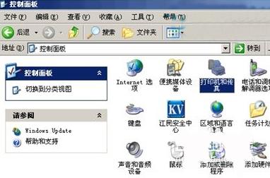 首先我们打开控制面板,在控制面板中点击打印机和传真。