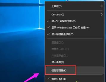 3.在任务栏底部空白地方,用鼠标右键点击,打开一个菜单栏,点击即可打开任务管理器。