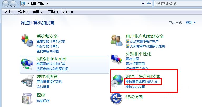 一、首先打开控制面板,点击时间、语言和区域中的更改键盘或其他输入法。