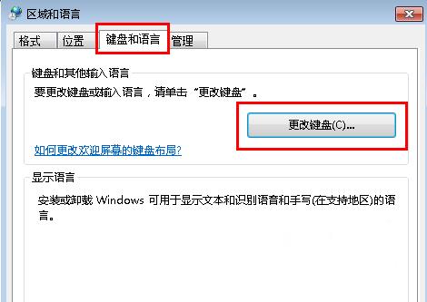 二、接着会弹出一个区域和语言的窗口,切换到键盘和语言的标签中,点击更改键盘。