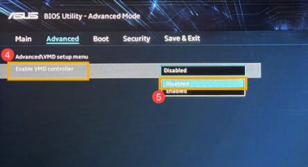 2、接着在advanced选项卡下,找到“VMD setup menu”