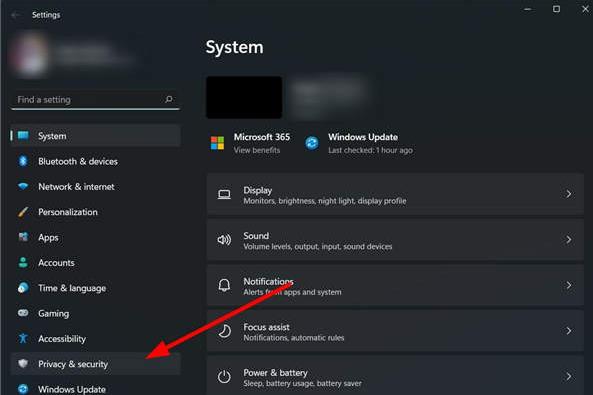 2. 从左侧窗格中选择隐私和安全。