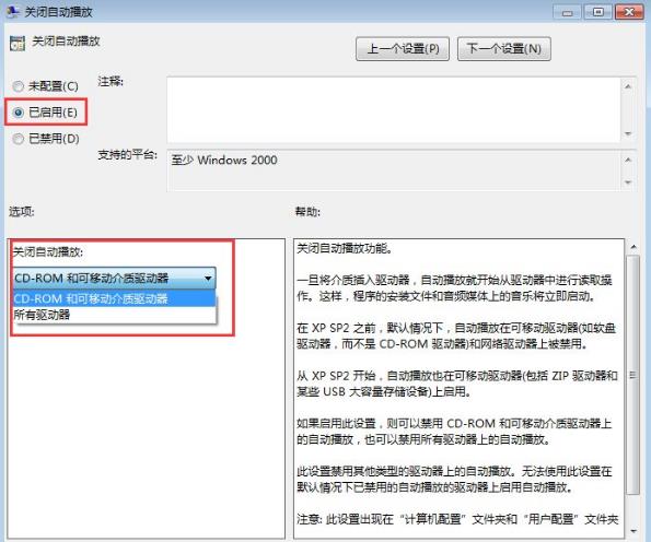 设置为启用,我们还可以通过下面的设置选择是否对所有驱动器启用。