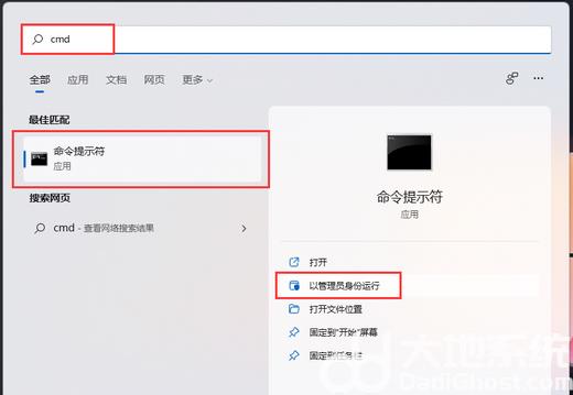 1、首先,按键盘上的【 Win + S 】组合键,或点击任务栏上的【搜索图标】,打开的Windows 搜索窗口,顶部搜索框,输入【cmd】,然后点击【以管理员身份运行】命令提示符应用;