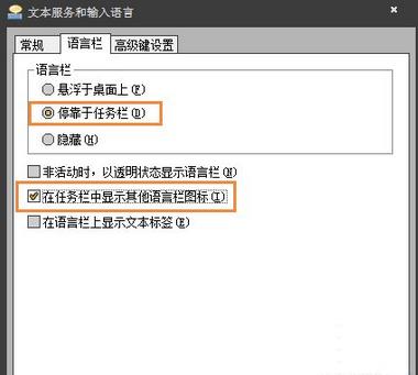 最后切换到语言栏窗口中,选择停靠于任务栏和在任务栏中显示其他语言栏图标即可解决深度技术win7英文输入法不见了的故障。
