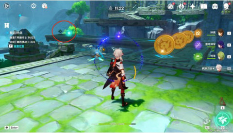 1.最先,大家进到密境之后,先关掉图上右边的机关,将风场关掉,之后将左边的拦风枢的风场方向调整至往上,接着往左边走