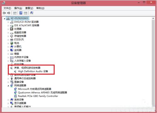 然后在声音、视频和游戏控制器中找到High Definition Audio设备是否出现问题。