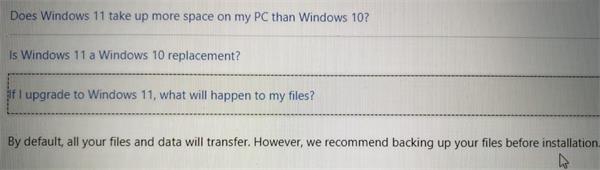 3、虽然在微软的Q&A中,我们可以看到升级win11是不会造成文件丢失的。