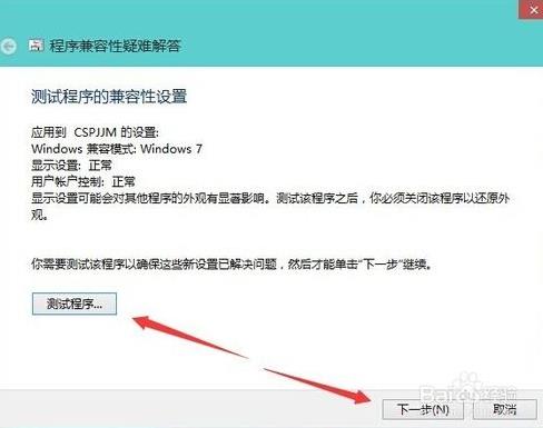 点击测试程序,如果软件能够正常运行了,点击下一步。