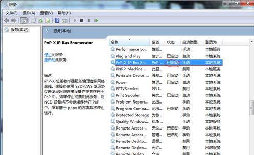 4、 接着选择左边的服务选项,下拉并选择PnP-X IP Bus Enumerator并且双击它。